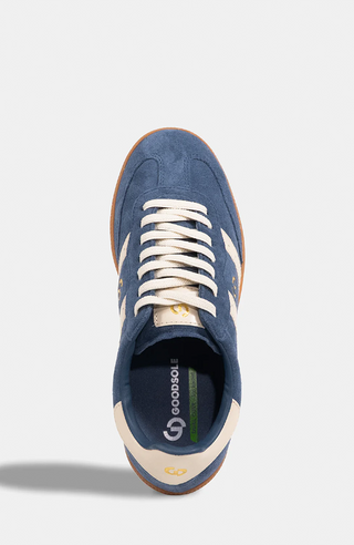 Step into the space age with the 2001 Parallel – the sneakers of the future, available today. These kicks are out of this world. Crafted in rich peacock blue suede with crisp white accents and a gum sole, this retro-inspired silhouette blends bold style with modern comfort. A gold circular logo adds a subtle luxe touch, while the sustainably made antimicrobial footbed delivers exceptional cushioning. Finished with a traction-ready gum sole and unisex sizing, this sneaker is built for everyday wear with standout appeal.