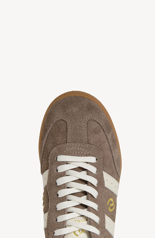 Make a casual style statement with this 2001 Parallel. These sneakers combine walnut brown suede and ivory waxy leather for a casual look.