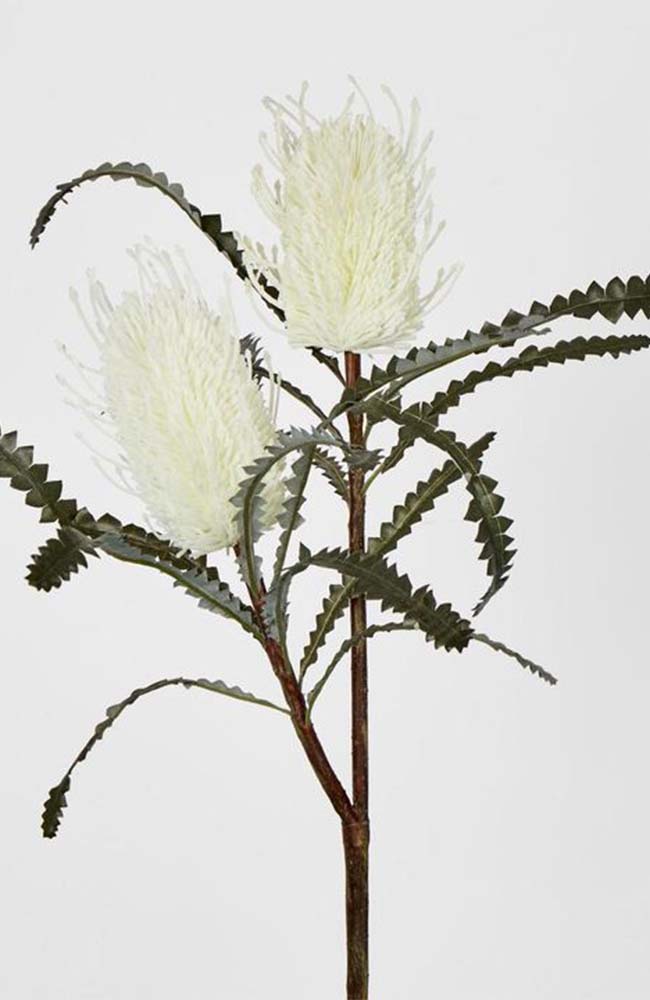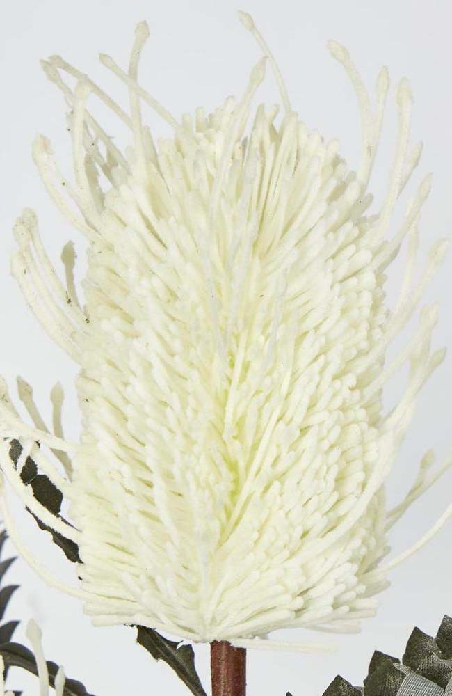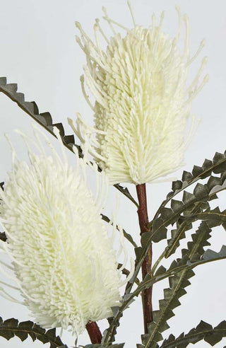 An exquisite 84cm Banksia spray in cream white that brings effortless elegance to any interior. Crafted with meticulous attention to botanical detail, this statement piece captures the distinctive texture and sculptural beauty of native Australian flora.