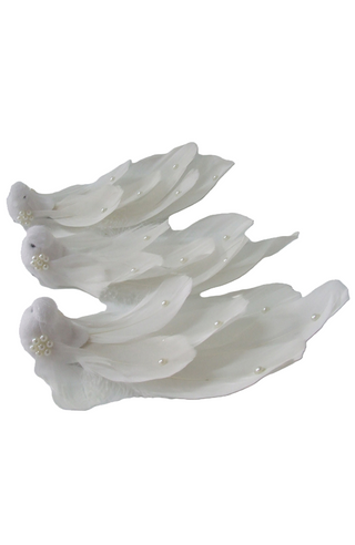 Add a graceful touch to your décor with this set of 3 assorted Clip-On Birds in a stunning pearl white finish. Each bird is delicately crafted with soft, feather-like wings and adorned with faux pearls, giving them a refined and elegant look.
