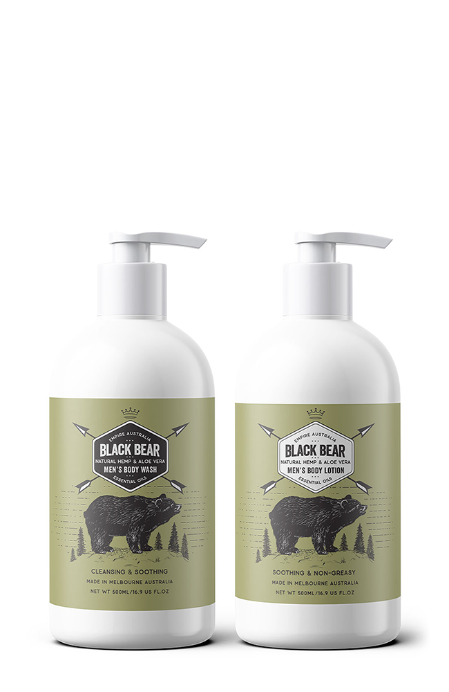 Elevate your grooming routine with the Black Bear Men’s Body Care Gift Set, crafted in Melbourne, Australia. This premium duo combines nature’s finest ingredients—hemp, aloe vera, patchouli, and black pepper essential oils—to deliver a refreshing, invigorating experience.