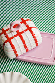 The butter dish plaid brings a modern and fresh look to your dining table. Made from high-quality glazed dolomite, this butter dish exudes durability and style. The graphic pattern adds a touch of whimsy. Complete with a small plate and matching lid to keep your butter fresh, this set is the perfect addition to elevate your everyday meals with a touch of elegance.