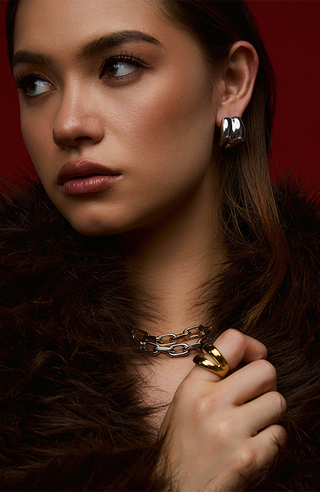 The Carmen Necklace by Zahar features oversized, high shine links for a sleek and sculptural look. Designed to stand alone or stack with your favourites, this chunky chain necklace adds effortless edge to any outfit.
