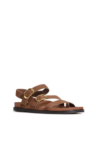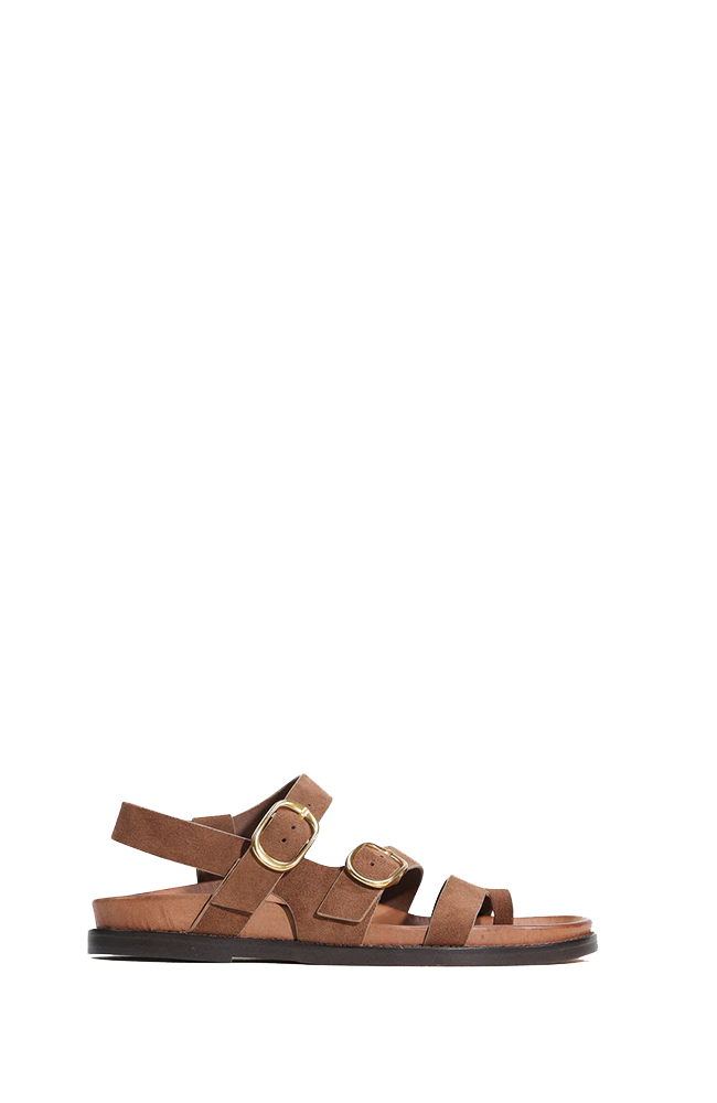 Earthy tones meet everyday comfort in the Carmins Sandal in Acorn. Made from soft suede, this sandal features two adjustable straps with gold-toned buckles and a supportive heel strap for a secure fit. The warm acorn hue adds a natural, versatile touch to your wardrobe, perfect for relaxed days and casual outings.