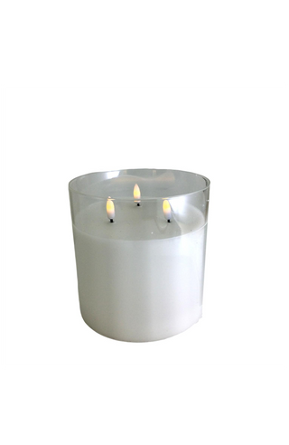 Three dancing LED flames flicker within pristine clear glass, casting an ambient glow that captures the romance of candlelight without the flame. At 15 × 15cm, this elegant piece brings effortless sophistication to mantels, tablescapes, and intimate gatherings.