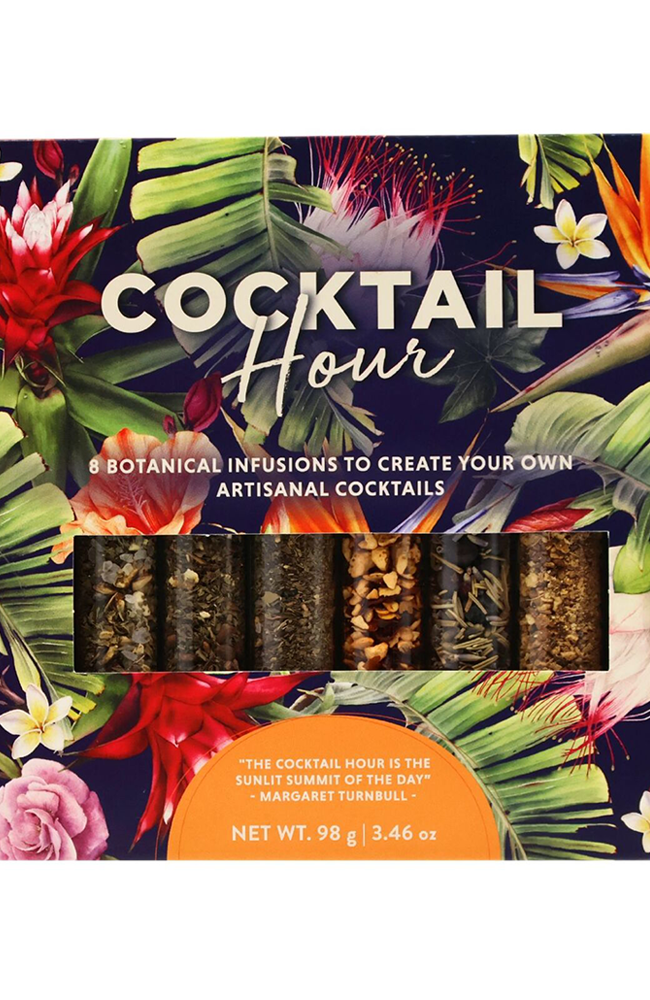 Boost your mixology expertise and spark your imagination with our Cocktail Hour collection, an exquisite set of eight botanical infusions gathered from across the world, crafted to elevate your drinks into bespoke creations. Use these blends to infuse your spirits, then mix up your own signature cocktails to impress your guests with distinctive flavour combinations that redefine the norms of mixology. Add a smoky twist with mezcal or bring out the nuanced complexity of rum. Delve into the rich flavours of a spiced whiskey infusion or refresh classic vodka cocktails with a novel twist. For the adventurous spirit, dive into the tequila infusion or enhance your Gin & Tonic with our special gin blend. On chilly nights, our Glühwein mix warms with its rich spices, while the sparkling wine infusion brings a festive fizz to any celebration. Each botanical blend is carefully packaged in a unique glass tube with a twist-off lid to maintain freshness and ease of use. Our products are free from MSG, irradiated ingredients, preservatives, artificial colours or flavours, and are NON-GMO. Beautifully packaged as a gift, this collection is perfect for cocktail lovers or as an exceptional gift for any special occasion.
