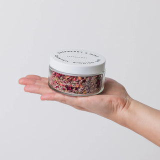 Ingredients: White salt, Pink salt, Raspberry powder, Mint, Rose petals. May contain traces of Nuts, Egg, Soy, Dairy and Sesame.