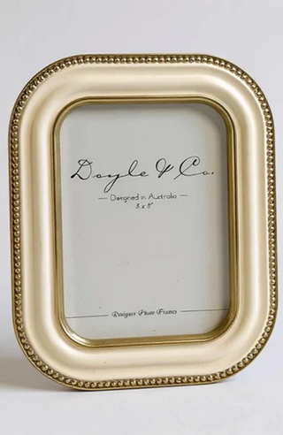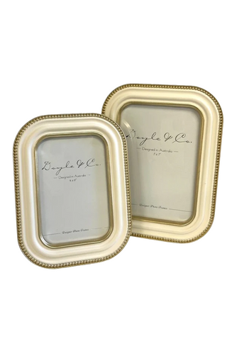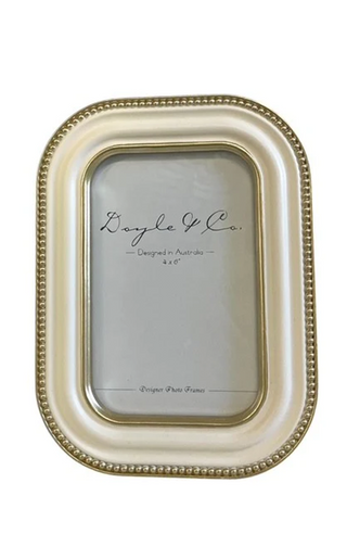 Elevate your cherished memories with this elegant 4x6 cream frame, adorned with delicate gold bead detailing. Its refined design adds a touch of sophistication to any space, making it perfect for showcasing your most treasured photographs with timeless style.