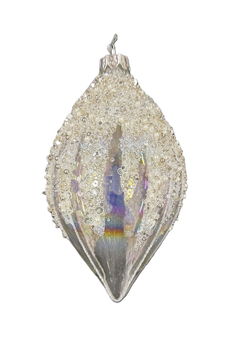 Elevate your festive décor with the Crystal Long Drop Bauble in White/Pearl from Theatre's Crystal Splendour Collection. This exquisite glass ornament features a luminous pearl finish adorned with delicate encrusted details, creating an elegant shimmer that captures the light beautifully.