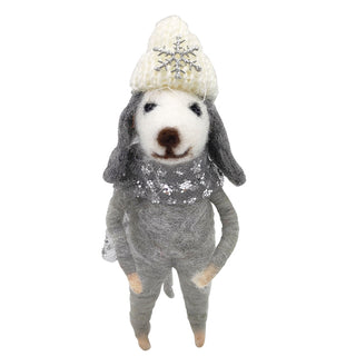 Add a whimsical touch to your holiday décor with this adorable Felt White & Silver Dog in Hat Decoration. Standing at 14cm tall, this charming felted figurine brings cozy winter vibes to any festive setup.