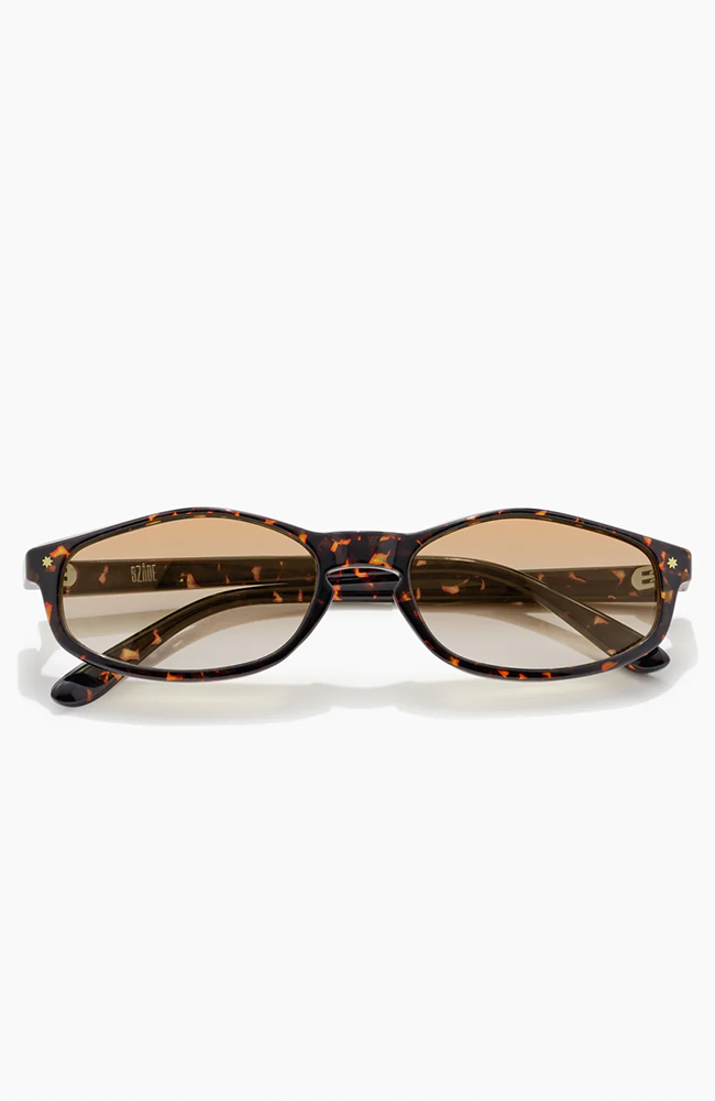 signature szade ; introducing dove, our slim minimal frame that does it all. dove will take you from a tank top and jeans to a micro mini and heels… and everything in between. with a hint of edgy sports-chic and classic 90's sunglass proportions this frame is sugar, spice and everything nice. get your hailey-bieber on with dove in a classic tortoiseshell frame with gradient amber lenses.