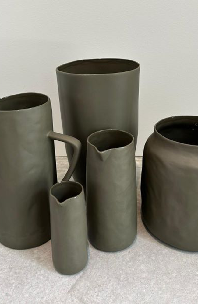 Handcrafted in ceramic, this small jug in Khaki offers a minimalist silhouette without a handle for a clean, modern aesthetic. Its compact size and smooth finish make it ideal for serving sauces, dressings, or small portions at the table. Functional and versatile, it’s dishwasher and microwave safe, combining everyday practicality with timeless design.