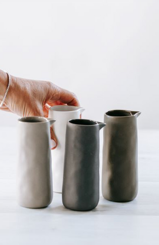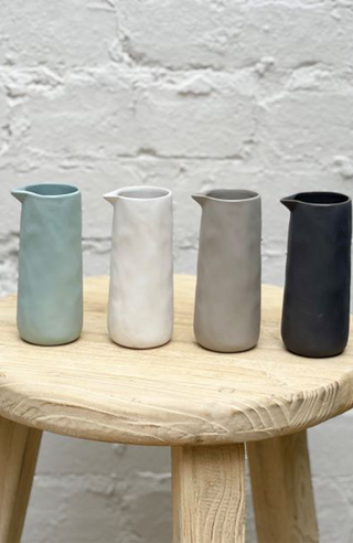 Handcrafted in ceramic, this jug in Charcoal offers a minimalist silhouette without a handle for a clean, modern aesthetic. Standing 13cm high, it’s designed with a smooth finish and subtle spout, making it ideal for serving water, juice, or table-side portions. With a capacity of approximately 180 ml, it balances functionality with timeless design. Dishwasher and microwave safe, it’s perfect for everyday use or entertaining.