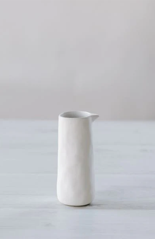 Handcrafted in a minimalist design, this small ceramic jug in Snow White offers understated elegance for everyday use. With a smooth finish and compact form, it’s perfect for serving sauces, dressings, or small portions at the table. Functional and versatile, it’s both dishwasher and microwave safe, making it as practical as it is stylish.