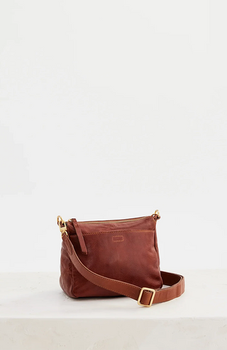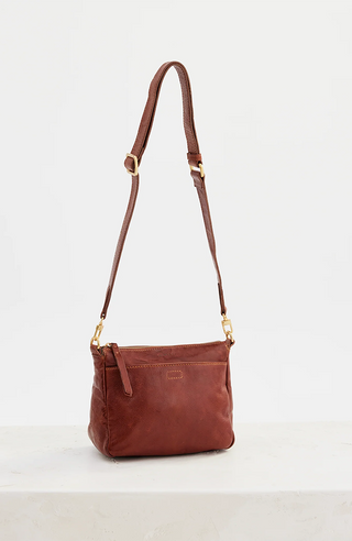 The Frida Crossbody is a small casual crossbody ideal for everyday wear. It is made from tumbled leather, arriving in the colours tan, chocolate and black, and is lined with taupe cotton. The Frida Crossbody has a slip pocket with magnet on the outside, an internal zip pocket, top zip closure, and a wide base giving it a spacious interior. It has a comfortable wide shoulder strap that is adjustable and removable, with gold toned hardware.
