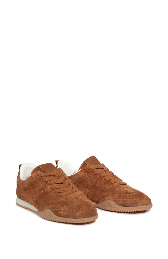 Elevate your everyday look with the Jessabele Trainer in Tobacco Suede. Crafted from rich tobacco-colored suede, these trainers offer a refined yet relaxed style perfect for casual outings. Featuring detailed stitching and matching laces, the design highlights craftsmanship and cohesion. A soft white padded interior ensures all-day comfort, while the durable rubber sole provides reliable grip and long-lasting wear.