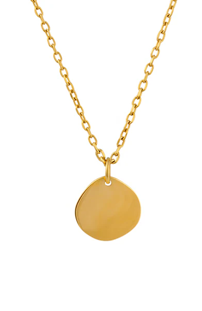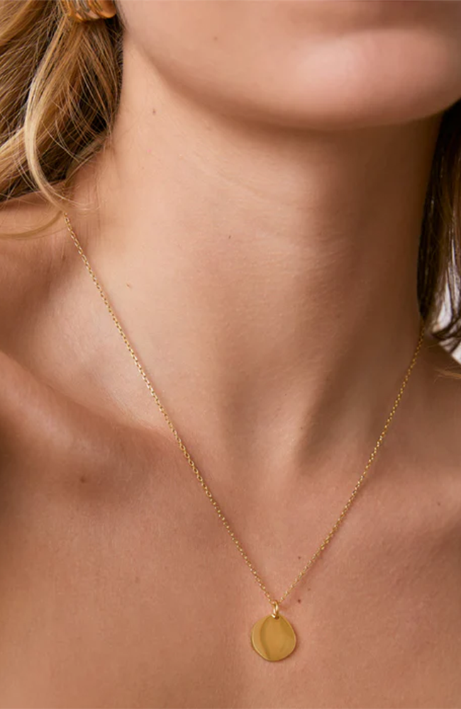 The Large Pebble Pendant Necklace by Zahar features a softly contoured, freeform disc that can be engraved with an initial. Modern simplicity meeting organic form - its smooth finish and sculptural silhouette make it a timeless piece for everyday wear or gifting.
