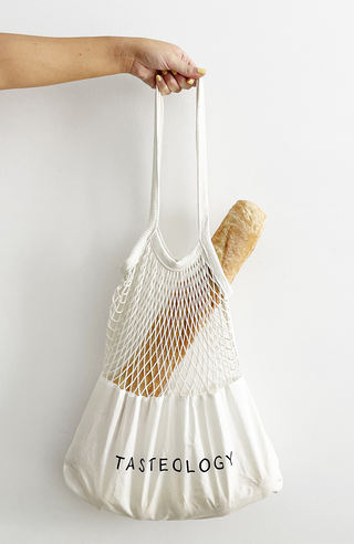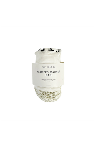 Ditch the plastic bags with our cotton canvas/mesh farmers market bag! Light weight and washable, this reusable zero waste product folds up small and is the perfect shopping companion.
