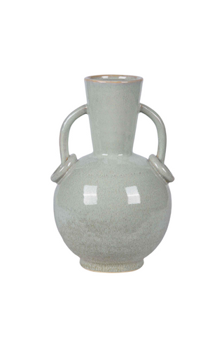 Elevate your home décor with the Primo Loop Handle Vase in a soothing Mint finish. This statement piece combines timeless design with modern craftsmanship, featuring a rounded body and distinctive looped handles for an artistic touch. Its subtle glaze and elegant silhouette make it perfect for showcasing fresh blooms or standing alone as a decorative accent.