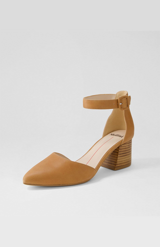 Dress to impress in these chic tan leather heels by Mollini. RAEMS is a stylish and timeless pair of heels that are stunning with any outfit and will take you from the office to after work drinks to weddings and evening events.