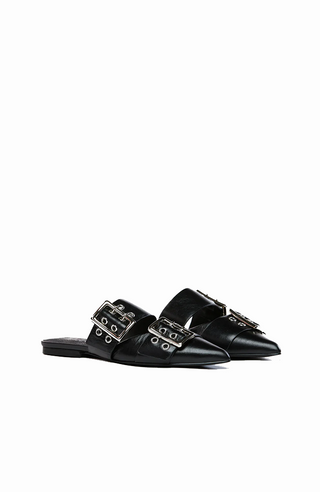 The RENOIR pointed flat by Hael & Jax delivers ultimate comfort without sacrificing style, featuring an oversized double buckle for a modern touch.