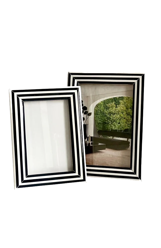 Introducing our RESIN BLACK & WHITE COMO FRAME, a luxurious and elegant addition to any home decor. Made with exquisite RESIN material, this frame exudes sophistication and class. Its sleek black and white design will enhance any 4x6 photograph, making it a perfect display piece for your most cherished memories. Elevate your interior design with this stunning frame.