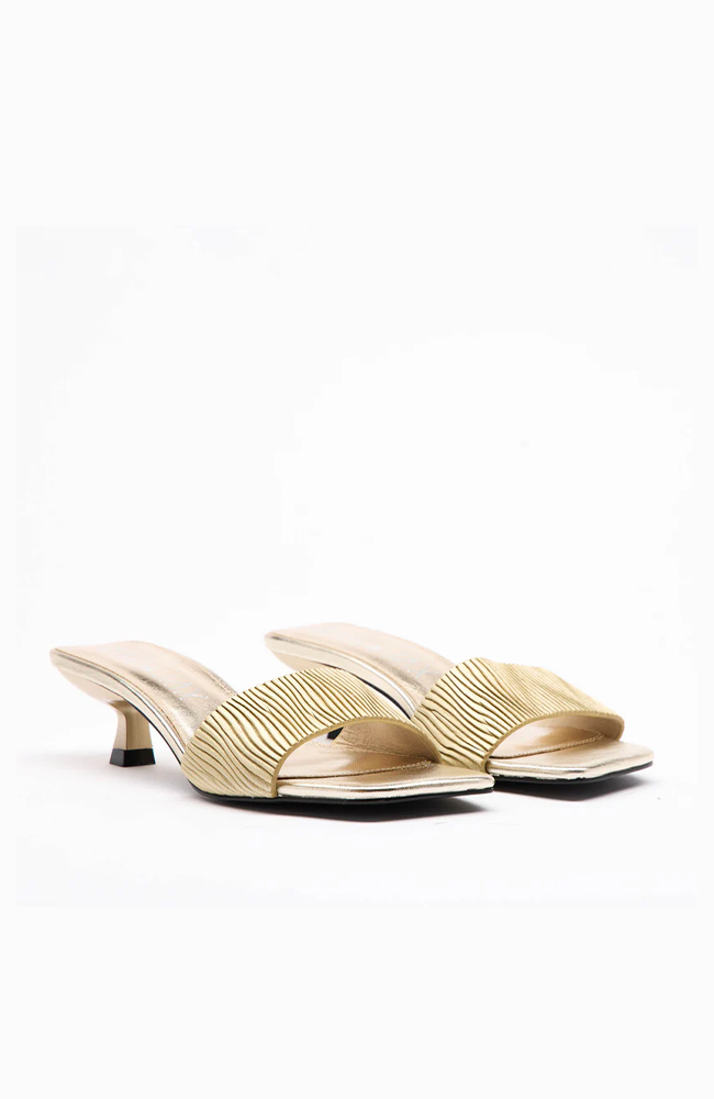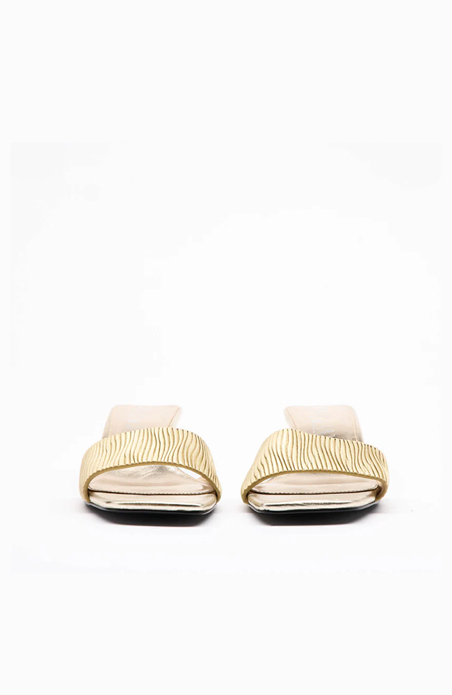 Turn heads with the Revolution Heels in Gold by Mollini — a striking mule-style heel that blends glamour with modern elegance. Featuring a textured upper and sleek silhouette, this open-toe design is perfect for evening wear or adding a touch of shine to your day look.