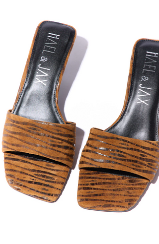 Make a bold statement with the Revolution Heels in Mocha Animal by Mollini — a chic mule-style heel that blends playful print with sleek sophistication. Featuring a mocha-toned animal pattern and a low, sculpted heel, this open-back design is perfect for adding flair to your day or night look.