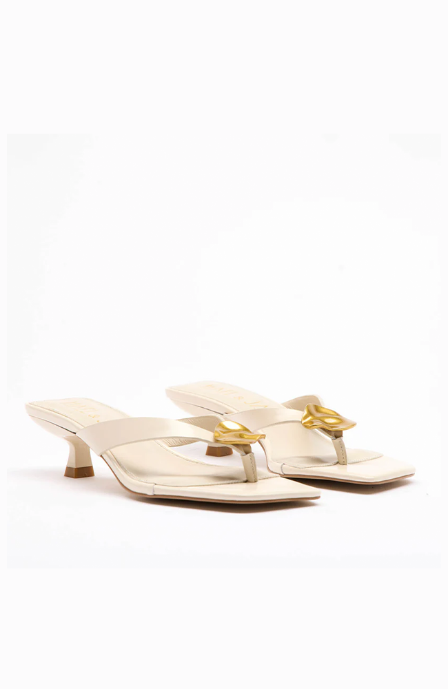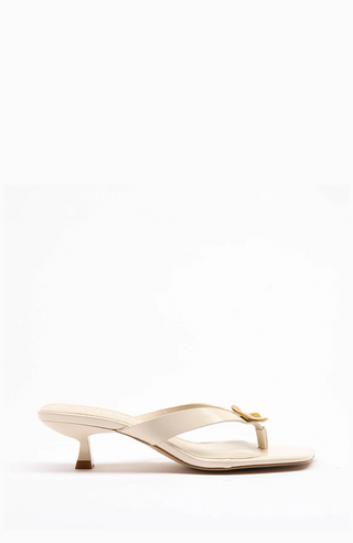 Minimalist and modern, the Riviera Heels in Bone by Mollini are a fresh take on warm-weather elegance. With a sleek thong-style strap and low kitten heel, this sandal blends simplicity with sophistication — perfect for day-to-night dressing.