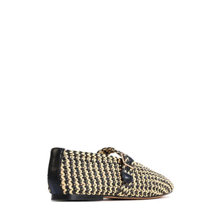 Add a touch of understated elegance to your wardrobe with these black raffia woven Santalum Mary Jane flats. The textured raffia design brings a natural, artisanal feel, while the classic strap with buckle ensures a secure fit. Sleek and versatile, the all-black finish makes these flats perfect for pairing with both casual and polished looks. Lightweight and comfortable, they’re a stylish staple for everyday wear.