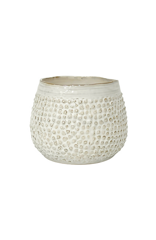 The Scully Fawn Ceramic Planter is a stylish and versatile piece that adds texture and elegance to any space. Featuring a rounded silhouette and a unique raised dot pattern, this planter is finished in a soft fawn glaze for a warm, neutral look. Perfect for showcasing your favorite indoor plants or as a decorative accent on its own.