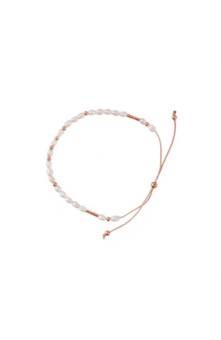 The Strand Bracelet in gold by Bianc features a delicate collection of freshwater pearls joined together on a fine adjustable nylon rope and connected with gold vermeil beads.