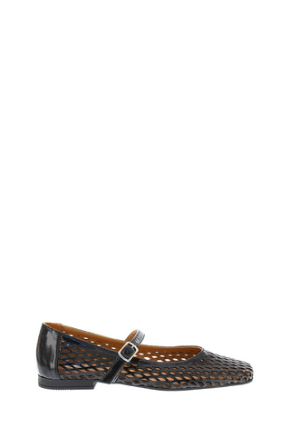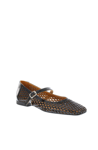 Step into timeless style with a modern twist. These black Mary Jane flats feature a beautifully woven lattice design that blends breathability with sophistication. The classic strap across the instep is secured with a sleek metallic buckle, offering both charm and a secure fit. A low heel adds subtle elevation, while the soft tan inner lining ensures all-day comfort.