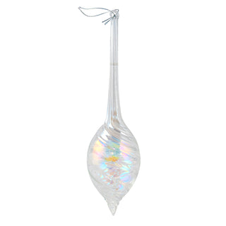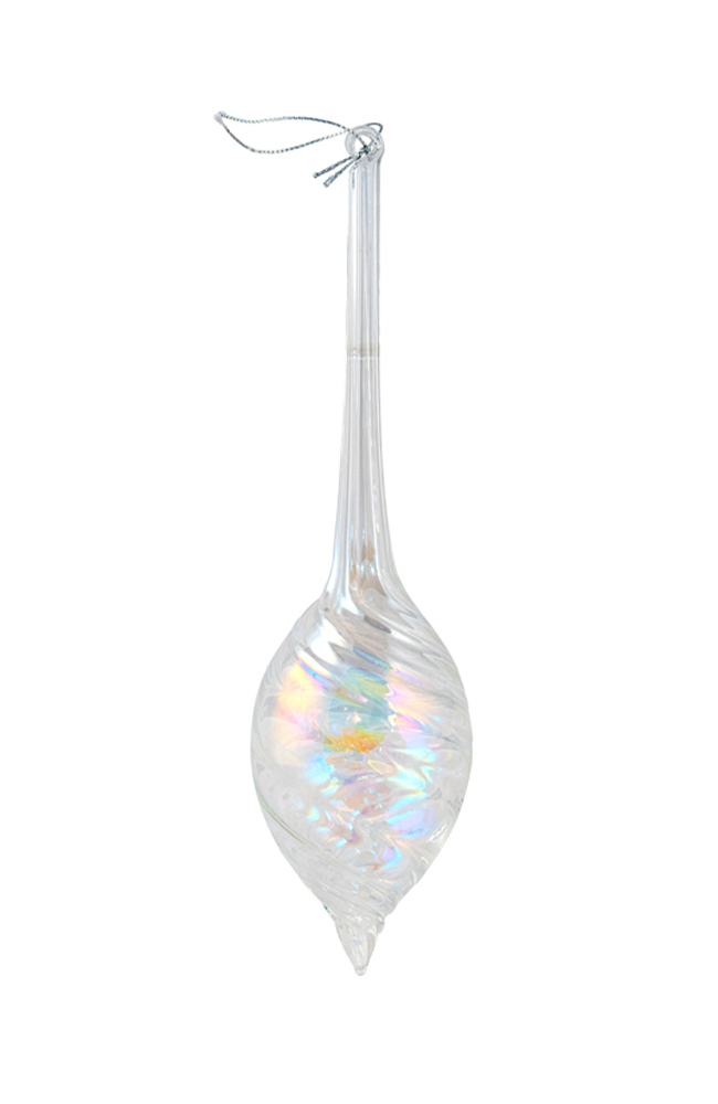 Add a radiant touch of elegance to your holiday décor with this Teardrop Glass Ornament. Measuring 24cm in height, this stunning piece features a narrow top that gracefully widens into a bulbous, onion-like base, creating a sophisticated silhouette.