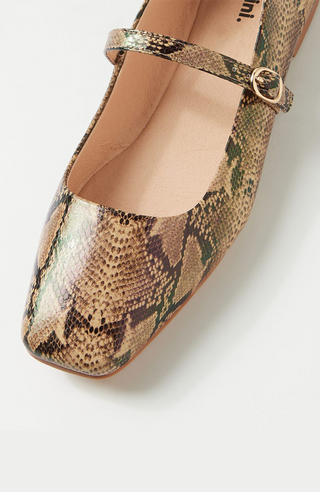 Material Leather Snake PrintHeel Height (CM) 0.5Women's Leather FlatsSquare ToeBuckled StrapFlat Stacked Heel
