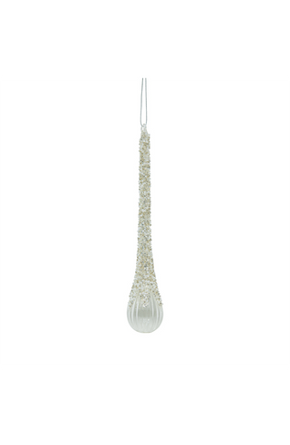 Add a sleek and sparkling touch to your holiday décor with this Glass White Icicle Ornament – Narrow Edition. Crafted from clear glass, this elegant decoration features a long, slender silhouette that tapers gracefully to a rounded end.