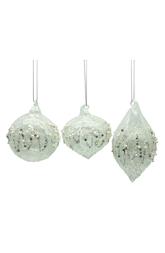 Luminous glass adorned with delicate pearl embellishments. Each bauble captures light with ethereal grace, bringing refined elegance to your festive displays. A sophisticated accent that elevates seasonal styling with timeless, artisanal beauty.