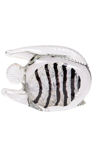 A sculptural statement in artisan glass. This hand-crafted fish captures light and movement with refined simplicity, its distinctive zebra striping adding graphic elegance to the organic form.